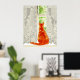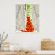 Orange striped tiger cat looking out window drawn by artist. Lace curtains and window added on Photoshop. Cat lovers will love this poster.