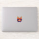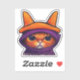 Orange Cat Purple Witch Hat Halloween Sticker. A drawing of a cute orange cat with a purple and orange hat.