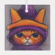 Orange Cat with Purple Witch Hat Halloween Glass Tree Decoration