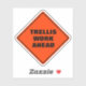 A classic orange diamond caution road sign warns of trellis work ahead in a thick black sans serif font. A pun play on words of a classic sign, road work ahead, garden humour, fence architecture, for purgola or plants.