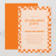 This graduation party invitation features a modern retro orange checker border with a clean cream center and bold typography. Designed for high school or college graduation celebrations, it feels current, confident, and teen-approved without being childish. The structured layout keeps all event details clear and easy to read while still making a statement. Personalize with your graduate’s name, date, time, and location for a polished party invite that stands out.