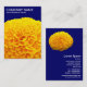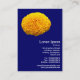 A business card design with an attractive Orange Chrysanthemum design. Company details on the front with name, title and other contact details on the back with a smaller Chrysanthemum motif