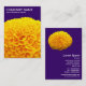 A business card design with an attractive Orange Chrysanthemum design. Company details on the front with name, title and other contact details on the back with a smaller Chrysanthemum motif