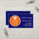 A business/profile card template with a white edged orange circular panel intended for Company details and logo. The logo used here is from Zodiac BT which is one of Zazzle's picture fonts. It can of course be changed, replaced or cleared and the text can be resized and/or realigned by pressing the customise button. The back of the card has been left blank using the same background colour as the front which can be further customised if desired.