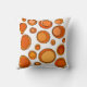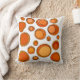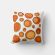 This throw pillow has sets of three circles or ovals in different shade of orange on a field of white. Want it in different colours? Message me.