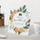 Featuring a circular frame surrounded by oranges, lemons, leaves and greenery. Add custom text using the fields provided.