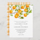 Rustic citrus theme wedding invitation card featuring watercolor illustration of orange fruits on a tree branch. Perfect for a summer celebration.