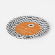 This graduation plate features trendy black zigzag pattern for the background accented with an orange circle in the centre. Popular hand lettered style text reads: Class of 2017 with custom text for the name of the graduating senior and their school. A graduation hat above the text adds a small accent to the fun grad party plate. The orange circle colour is custom and can be changed to any available colour by choosing the customise it button.