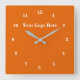 Orange Colour - Customisable - Add Your Logo / Tex Square Wall Clock