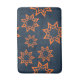 Cool, unique, trendy, urban abstract seamless, background pattern made with geometric star shapes. Decorative, modern vector art in orange and blue colours, graphic design artwork.