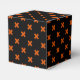 Orange cross stitches on black favour box