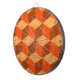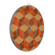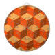 The design features an interlocking pattern of bright orange cubes. It could be seen as reminiscent of the art of M.C. Escher, but it simply uses basic geometric forms to achieve an attractive and elegant effect. It looks like an endless staircase in various shades of orange.