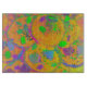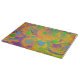 A pile of brightly coloured cupcakes decorated with marshmallows, chocolate stars, hearts, jelly sweets. sprinkles and glitter - ready to eat! Cutting board with an orange, blue, green and purple customisable design for you to personalise with your own text, pictures and ideas. Image created from an original photograph stylised using digital techniques.