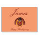 Orange custom Thanksgiving place cards with turkey picture and customisable text.
