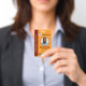 This vibrant orange company ID badge is designed for professional identification and security. Featuring a dedicated space for a company logo, employee photo, and essential details like name, job title, and ID number, it ensures easy recognition and access control. The reverse side includes a return-to address and space for additional information, making it ideal for lost and found situations. Its bold colour and clear layout make it a functional and stylish accessory for any business, promoting a secure and organised work environment.