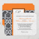 Orange Damask Monogram Wedding Invitation