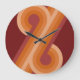 Orange Dark Maroon Red Retro Circles Art Pattern Large Clock