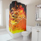 This shower curtain has a cool orange design on it.