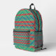 Backpack print cut sew style storage bag printed with Orange Diamond Blue Red Turquoise Pattern artwork design by TheFabricSeal at Zazzle #ZazzleMade https://www.zazzle.com/store/thefabricseal