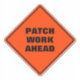 Funny classic orange diamond caution road sign warns of patch work ahead in a thick black sans serif font. A thoughtful gift for a seamstress, quilter, asphalt repair artist in your life.