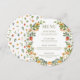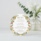 Experience vibrant elegance with our rustic spring/summer wedding menu card. Adorned with a greenery and orange flower wreath and delicate dusty green text, it perfectly enhances your dining. Explore our selection for a seasonally inspired touch to your celebration.