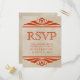 Stylish and chic Elegant Deco Wedding Response Postcard featuring a pair of art deco swirl flourish borders in dark orange and a vintage textured look background in a soft beige. This RSVP postcard has rustic charm while maintaining a lovely sophisticated flair. Absolutely perfect for an art deco 1920's vintage themed wedding. Easy to customise, simply add your wedding details in the text fields provided. Click "Customise It" to find more personalisation options such as changing fonts or text colours.