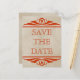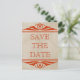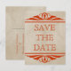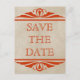 Stylish and chic Elegant Deco Save the Date Postcard featuring a pair of art deco swirl flourish borders in dark orange and a vintage textured look background in a soft beige. This save the date postcard has rustic charm while maintaining a lovely sophisticated flair. Absolutely perfect for an art deco 1920's vintage themed wedding. Easy to customise, simply add your wedding details in the text fields provided. Click "Customise It" to find more personalisation options such as changing fonts or text colours.