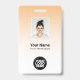 Easily personalise this Custom Corporate Employee Security Id Name Badge with Photo, Scan Bar Code or Qr code and business logo featuring a white ombre gradient on background colour. A simple business design in orange and white colours with an ombrè overlay, fully customisable in front and back sizes, sans-serif basic and modern fonts and a professional, elegant and clear look. The badges are avaiable with lanyard, metal clip or with retractable. No minimum order.