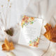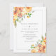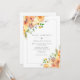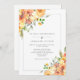 An elegant wedding invitation perfect for fall, featuring a border of orange watercolor flowers. Personalised text is in serif grey font.