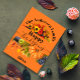 Send a vibrant splash of fall with this customisable Thanksgiving postcard, anchored by a brilliant orange background. The design is split into two bountiful harvest bands. The upper arch features a colourful arrangement of a bright sunflower, deep red cobs, and multicolored maple foliage. Below the elegant "Happy Thanksgiving" script, the lower border showcases a classic orange pumpkin resting amongst purple grapes, crisp green apples, and dark plums, all surrounded by scattering autumn leaves and berries. Easily personalise your family name and the year to deliver a warm, seasonal greeting.
