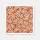 This design features a bold and vibrant pattern of fall leaves and acorns set against a striking orange background. The design showcases various types of leaves, including oak, maple, and other deciduous trees, all illustrated in a soft, cream colour with delicate line details that emphasize their veins and edges. Scattered among the leaves are small acorns, pine cones, and clusters of berries, adding texture and variety to the pattern. The contrast between the warm orange backdrop and the pale leaves creates a dynamic and eye-catching design, perfectly capturing the essence of the autumn season with a modern, graphic twist.
