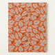 This design features a bold and vibrant pattern of fall leaves and acorns set against a striking orange background. The design showcases various types of leaves, including oak, maple, and other deciduous trees, all illustrated in a soft, cream colour with delicate line details that emphasize their veins and edges. Scattered among the leaves are small acorns, pine cones, and clusters of berries, adding texture and variety to the pattern. The contrast between the warm orange backdrop and the pale leaves creates a dynamic and eye-catching design, perfectly capturing the essence of the autumn season with a modern, graphic twist.