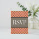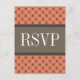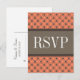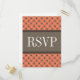 Trendy and chic Fancy Lattice Wedding RSVP Postcard featuring a stylish circle and diamond studded pattern over a vibrant nectarine orange background with a broad two-toned brown border. This elegant RSVP card is perfect for a modern wedding. Easy to customise, simply add your wedding details in the text fields provided. Click "Customise It" to find more personalisation options.