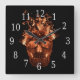 Orange Flaming Skull Square Clock
