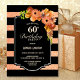 Black and faux glitter coral striped floral 60th birthday party invitation.