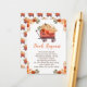Rustic baby shower book request with a pumpkin wagon, orange and beige pumpkins and floral flower arrangements. Perfect for an autumn fall baby shower. The words can be changed to suit your own details or requirements