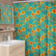 Orange Floral Tropical Pattern Turquoise Shower Curtain