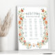 Experience romance and elegance with this refined seating chart poster, adorned with an elegant warm burnt orange floral blooms wreath. Featuring a total of 12 tables, this poster adds a sophisticated touch to your wedding decor.