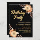 Orange Flower Botanical Gold Black Birthday Invitation