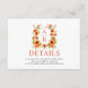 Orange flower crest and QR code floral wedding details enclosure Card. This enclosure card is a miniature work of art, designed to perfectly complement your wedding's overall aesthetic. The focal point is a beautifully crafted floral crest, intertwined with your initials, instantly personalising the card. Graceful blooms unfold in rich, sunset-inspired shades of orange, accented by the green leaves. The design embodies both romance and sophistication, with delicate details and a timeless appeal. The back of the card features a convenient QR code, allowing your guests to have access to wedding information.