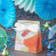 Beautiful modern designed floral tent guest box. Personalise with your celebration details to create a really special guest favour. Added flair for weddings, graduation parties, or a large corporate event. Orange blossoms with green.
