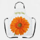 A colourful orange Gerbera Flower apron. The text and the image is customisable. There are additional products like paper plates, placemats and much more available.