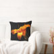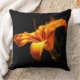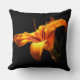 Throw pillow with image of a orange and yellow flower on the front and colourful abstract orange design on the back.
