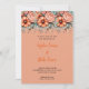 The invitation features simple black text, adding to its elegant and timeless look. However, the couple's names are in a lovely orange script font, matching the flowers on top of the invitation. This personal touch adds to the invitation's overall charm and makes it even more special.