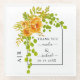Orange watercolor flowers, arch and initials Thank You fall wedding glass coaster. This lovely autumn wedding design features an arch frame with orange cactus flowers and leaves on the left corner and your initials. The names are in script typography.