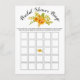 Orange watercolor flowers bouquet bridal Shower bingo game card. This lovely design showcases a bouquet of orange cactus flowers and green succulent.