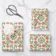 Orange Flowers, Floral Pattern, Greenery, Boho Wrapping Paper Sheet