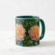 My original artwork is featured on this pretty floral mug, consisting of my original photograph of Chrysanthemum flowers, also called Mums or Pompom flowers. My photo was processed with a watercolor fantasy effect for an illustrated and whimsical appearance. The inside of the cup and handle are a green tone to complement the artwork.