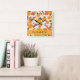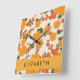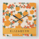 Orange Flowers, Pattern Of Flowers, Your Name Square Wall Clock