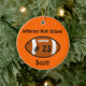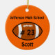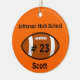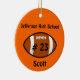 Custom football Christmas ornament done in a orange round shape ornament, with name and jersey number in black on a football icon. Personalise the name or text to suit your needs. Makes a nice ornament for kids or your star football player.